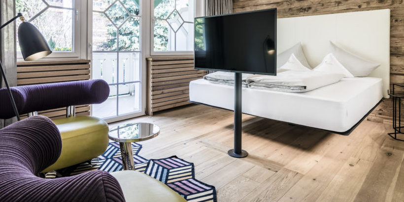 PRO srl ha affiancato la Famiglia Brunner nella scelta di nuovi arredi delle Suite.. L’esigenza della proprietà era di rendere l’arredamento il più sartoriale possibile. Questa forte impronta è stata possibile grazie a Moroso, leader nella ricerca di tessuti e dettagli. L’effetto sorpresa è garantito dalla sospensione e leggerezza del letto Fluttua di Lago. Una profonda caratterizzazione cromatica è invece donata dai geometrici ed unici tappeti Parquet di Gan.