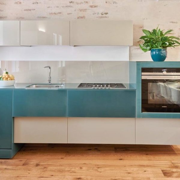Accedendo alla nuova casa vacanza si entra nella zona soggiorno, in cui trova posto il camino in pietra restaurato e rimesso in funzione, su cui si affacciano un confortevole divano-letto Air e una libreria Air sospesa su resistenti lastre in vetro temperato.